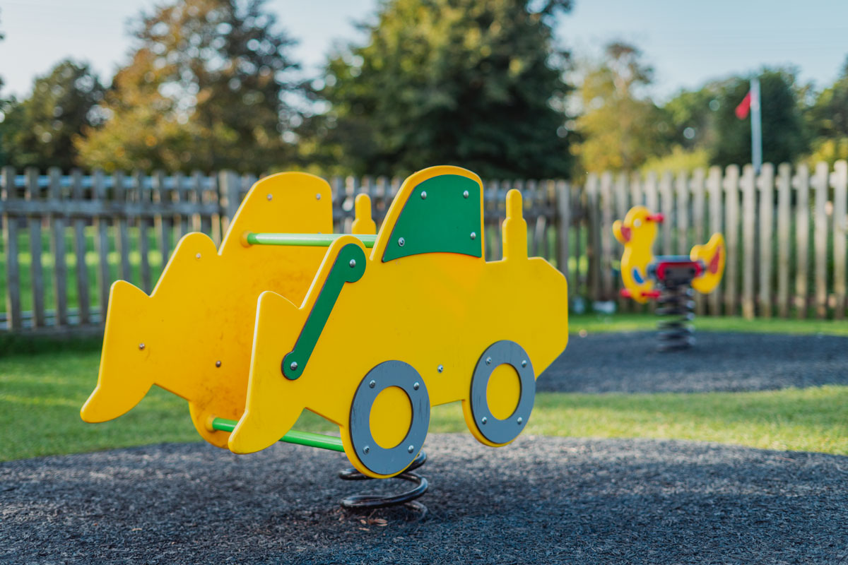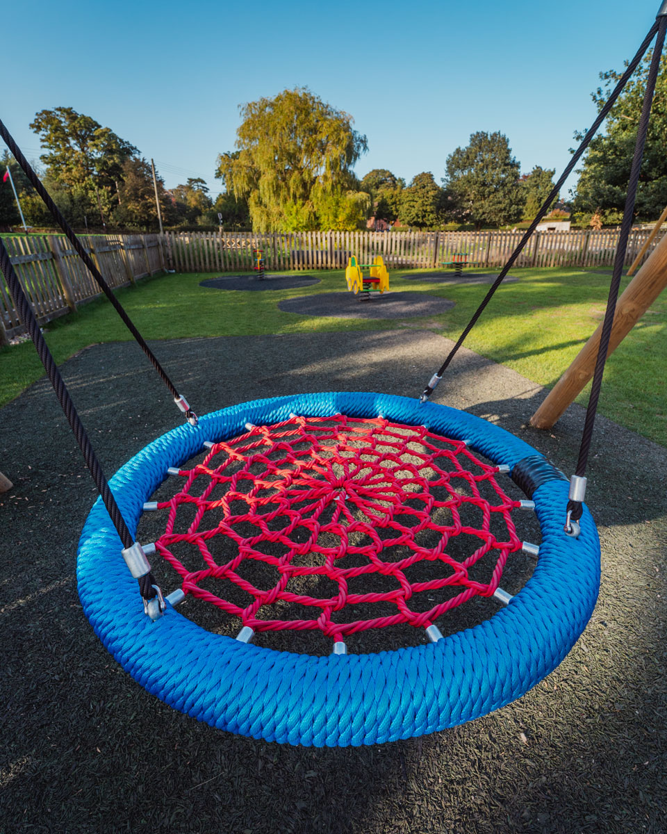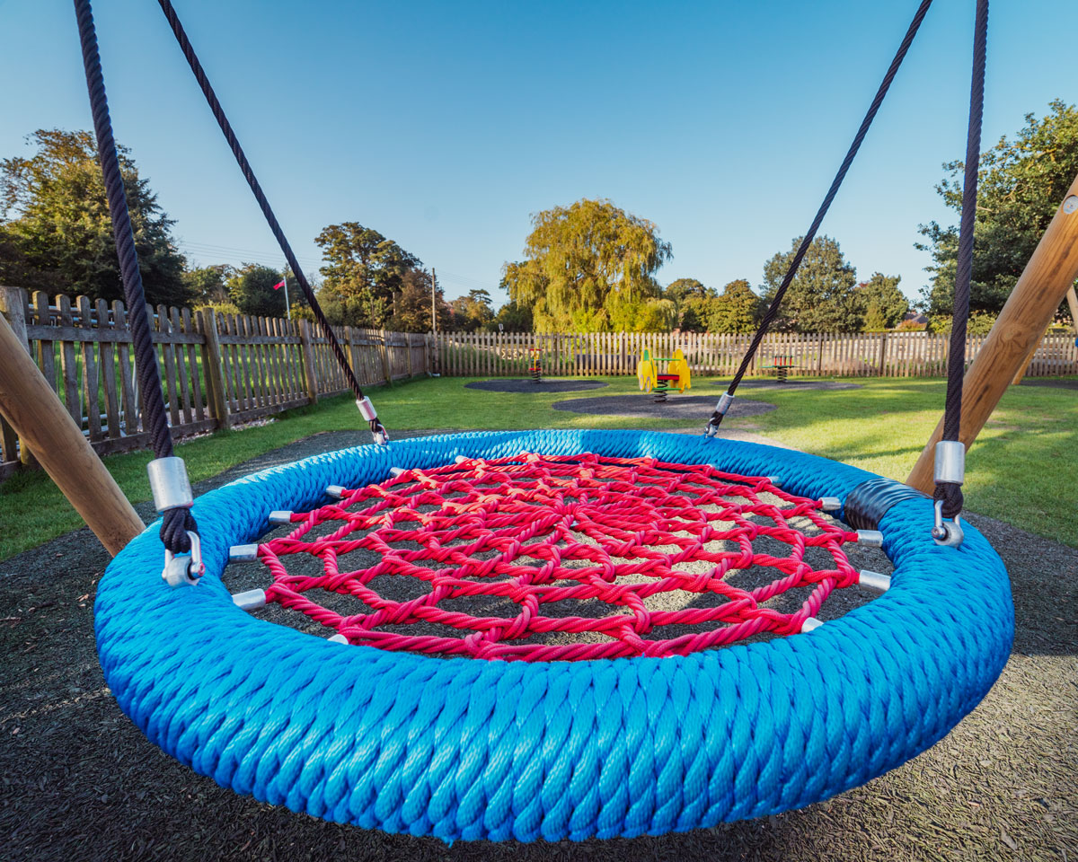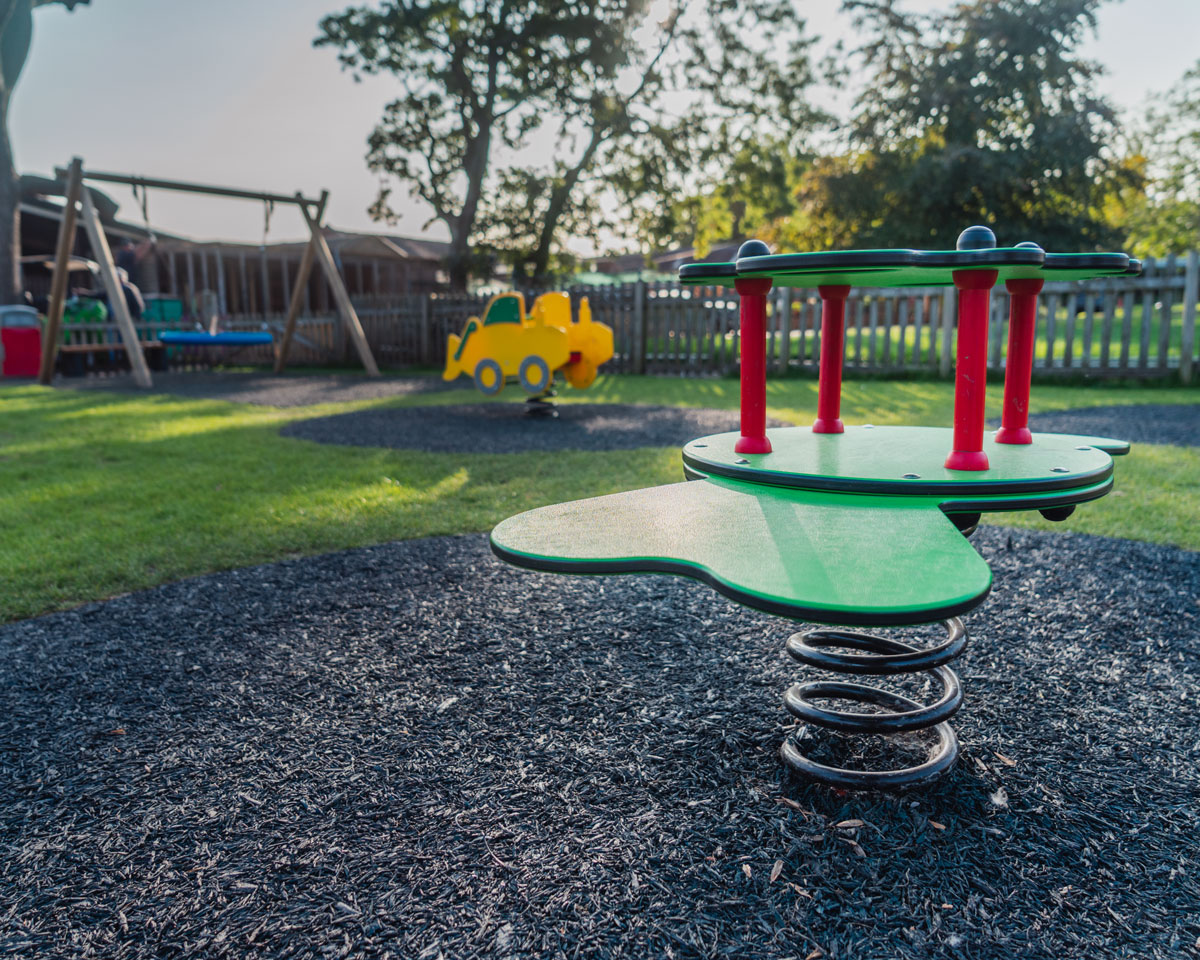 Following the discussions we have had with the team at Glebe Farm as well as talking to some of the local parents and children, our in-house design team started on the plans and designs for the new playground. The idea was to keep things simple, low maintenance and equipment with a long life span. We decided to keep the existing rural farm theme with a timber multi-play tower, including a slide and various elements which encouraged creative and open play. Springer Animals, related to the farm were also chosen with a double timber swing set and a basket swing for inclusive group play. The play surfacing around the equipment was Rubber Mulch with turf areas in between. This was done to allow the water to drain away from site easily and with adequate drainage facilities.