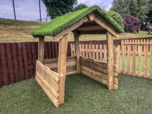 This Forest Play Hut is part of the unique Wild Wood range exclusive to ESP. Our product design team have created a range to inject natural appearances into school playgrounds. This rustic design provides a real feeling of being out in the woods. Made from the highest quality laminated timber, all product within the Wild Wood range come with a 15 years guarantee.