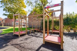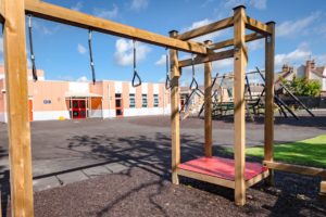 School climbing frames must be safe and compliant. This FreeFlow package 1 system comes with a certificate of compliance.