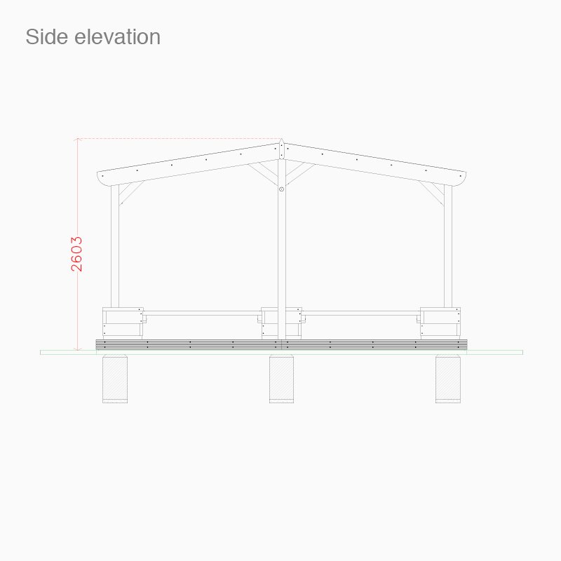 Sawn redwood timber from FSC sustainable sources, all pressure treated to class 4 after all manufacturing processes have been completed.