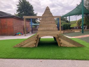 Inspired by nature; the Mountain and Mines tunnel and mound is a beautiful piece of product design fro the playground industry. Natural play areas are becoming more and more popular. Schools in particular are keen to create natural looking playgrounds and playground tunnels tick many boxes for EYFS and KS1 play areas. This products challenges children to crawl though, climb over, crawl over, balance and use grip. This open ended product gets kids talking, problem solving and role playing. Endless play value!!!