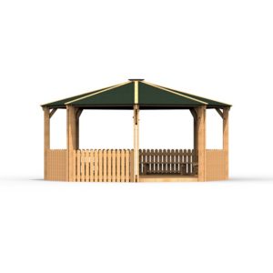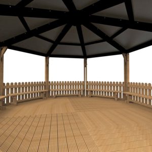 Octagonal Shelter – With Picket Sides, Seating and Decking
