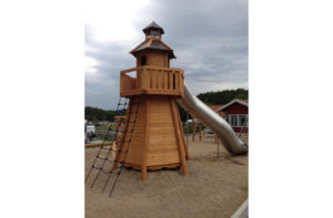 The Robinia Lighthouse with its large Stainless Steel Tunnel Slide is a piece of must-have play equipment to keep them coming back!