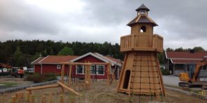 The Robinia Lighthouse is a large climbing tower which is designed to be exciting and attractive. It can form a nice focal point in any playground or accompany other large Robinia Castles or Play Towers. There is a 3m stainless steel tunnel slide leading down from the Lighthouse platform with access from a scramble net climbing rope. Inside the Lighthouse can also be used for creative play and role play. It creates a nice cover play space where children can play together or individually.
