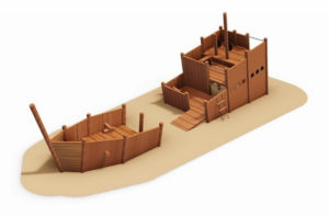 The Robinia Shipwreck is a large Viking wood boat which is giving the effect of a sunken shipwreck. Designed with creative and imaginative play vales it is open to a wide age range and abilities where all children can come and play together in groups or individually. With climbing and scrambling play activities the Robinia Shipwreck is a great addition to any play area and can form a nice focal play centre.