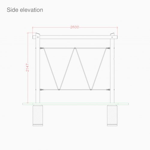 Steelwork is either aluminium or galvanised mild steel and is treated and primed prior to receiving a vibrant painted finish.
