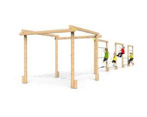 The Switch Apex Frame is part of our infinity trails range and allows you to use 2 of our interchangeable Switch Ropes at a time to create a customised climbing experience. The playground frame is set with an incline on each side which provides a traditional yet additional challenge to the assent of the ropework designs.