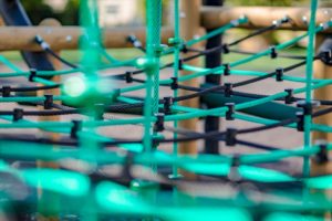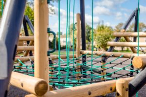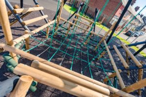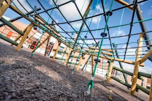 Colourful steel cored polypropylene ropes are used to ensure safety, durability, and vandal resistance.