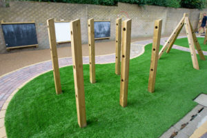 Den Making Posts are an ideal addition to any playground. They provide children the opportunity and freedom to use their initiative to design and construct their own secret hideaways. Using a range of from loose materials, our den making posts are the ideal structure to encourage children to play and socialise with others. They will learn joining techniques and discover what is the best material to use different challenges, whether the best materials to protect from rain, sun or wind. Our den making posts are made from long-lasting laminated timber which comes with a 20 year guarantee.  They can be arranged in many different orientations’ heights. They come with prepared holes on each pole to enable children to weave materials, hang, or drape fabrics through, to create they own little den areas. These posts are very versatile and can also be used for, hanging number lines, attaching instruments or resources to support formal learning.