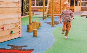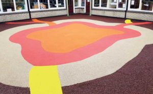 The installation of rubber safety flooring to playgrounds is available in a variety of bright colours.