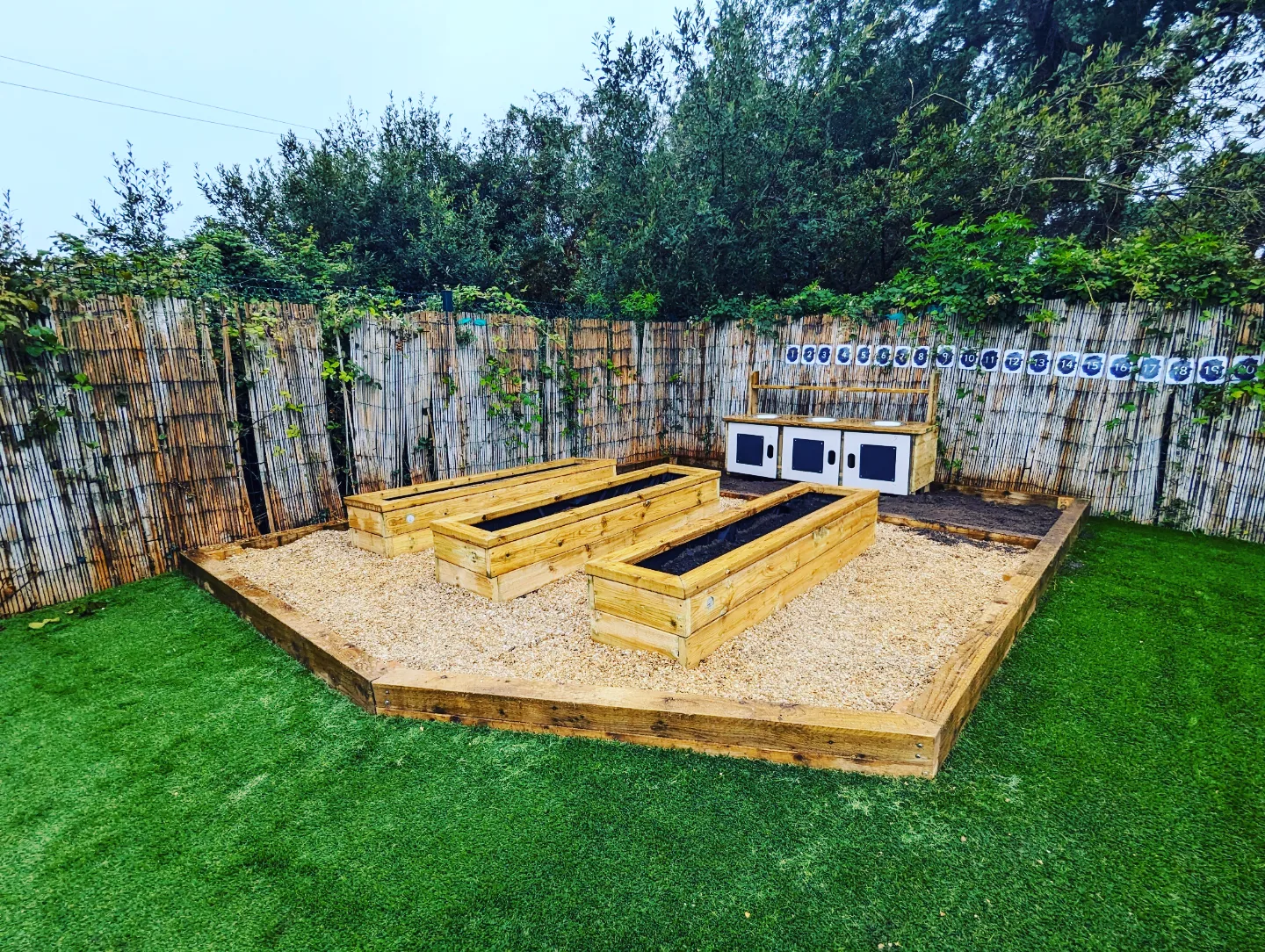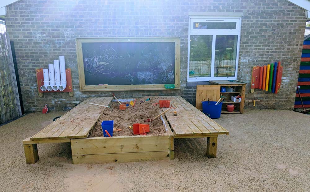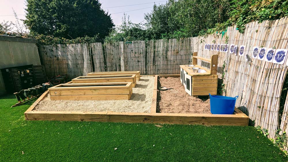The school wanted to evidence the experiences of the 7 areas of learning through the use of the outdoor resource. We included Messy play, planting zones, physical development, safety playground surfacing, and a large bespoke sand pit.