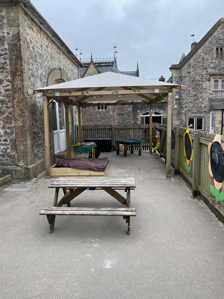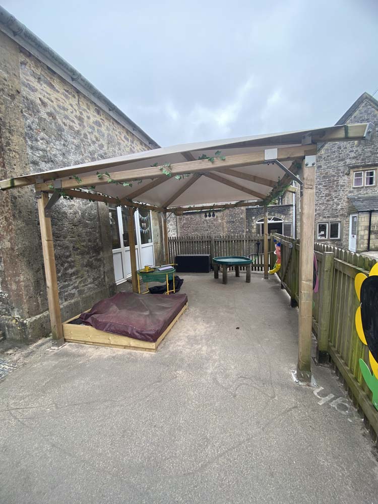 The canopy in this area was quite small and the staff wanted to extend this to cover entire width of the entrance. The school loved our open-ended block set and decided to have this in the reception playground too. Additionally, our mountain climb and mine tunnel provides extra play value.
