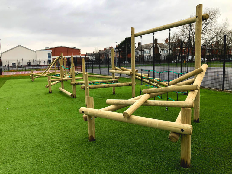 Armfield Academy, Blackpool contacted ESP Play to create an outdoor area that would help with the development of the children’s gross motor skills, develop team building skills and improve movement.