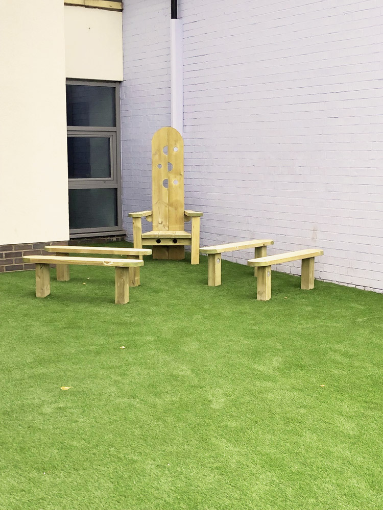 We supplied them with a range of equipment from artificial grass surfacing to marking making and different seating options. Brightening up the space and making it more inviting.