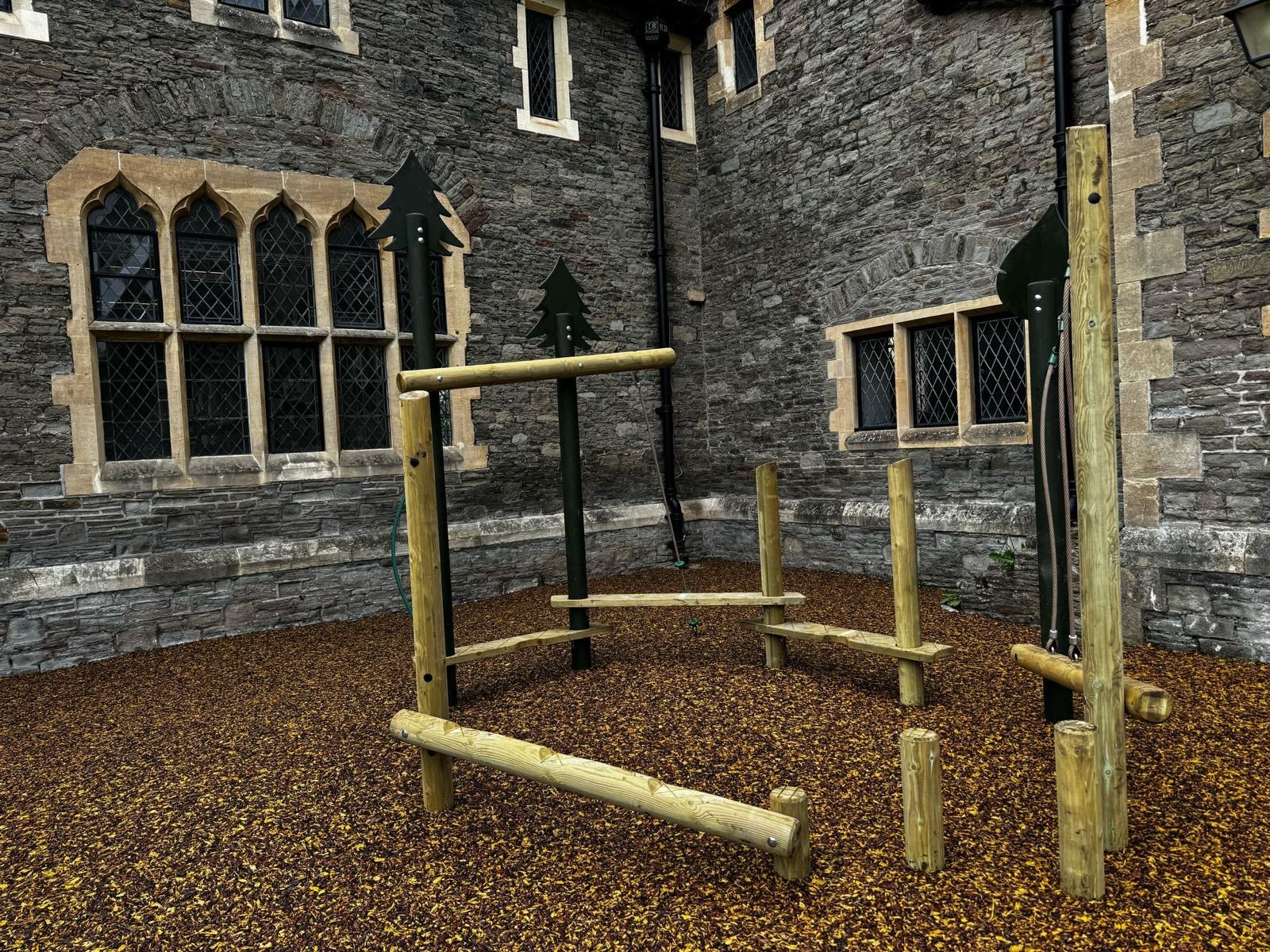 The solution focused on maximising a previously underused area within the school grounds, which had been difficult to maintain due to loose bark surfacing and overgrown shrubs. With space at a premium, the key priorities were to create an all-weather, fully accessible outdoor environment while providing meaningful gross motor development opportunities through climbing and physical play.