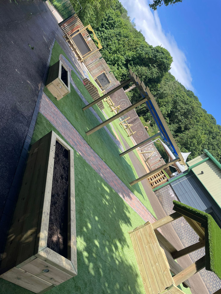 Baildon Glen Primary part of the Exceed Academies Trust needed to revamp the EYFS area. The staff were looking to renovate their outdoor EYFS area as it had areas that were no longer fit for purpose and contained health and safety hazards. The existing equipment was at the end of its life. This made the area dangerous with water features that didn’t work and lots of timbers rotting.