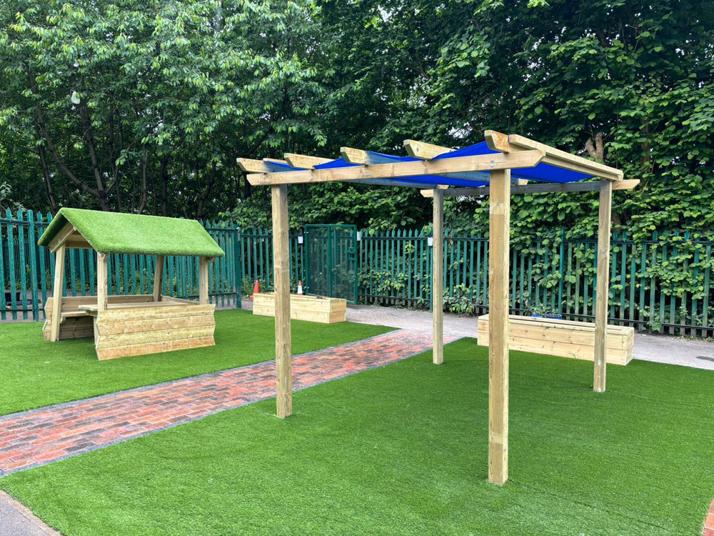 Baildon Glen Primary part of the Exceed Academies Trust needed to revamp the EYFS area. The staff were looking to renovate their outdoor EYFS area as it had areas that were no longer fit for purpose and contained health and safety hazards. The existing equipment was at the end of its life. This made the area dangerous with water features that didn’t work and lots of timbers rotting.