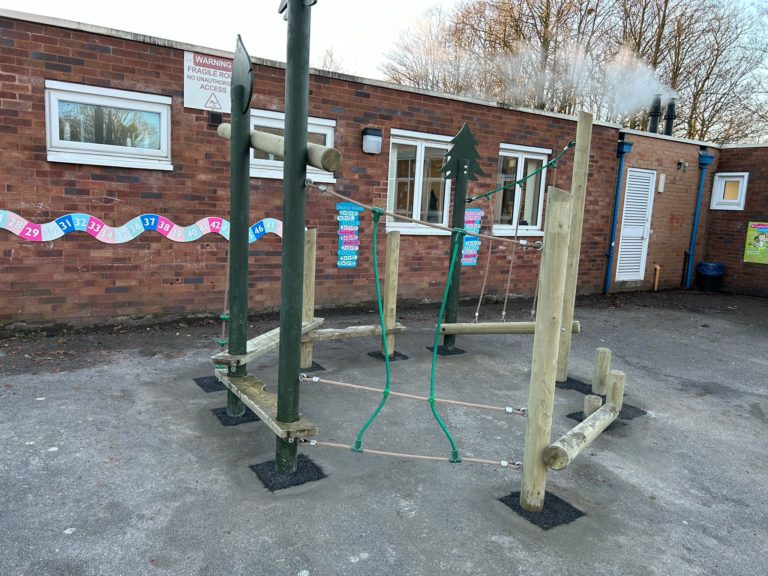 The children did use the existing markings so we wanted to make sure we avoided them and we found the perfect blank space to put some new equipment in. To start with, Gareth had wanted a play tower but after some discussion and a flick through our brochure, he soon decided that the Tree Trail Coppice would be perfect. The Coppice is a low level piece of equipment that does not require any safety surfacing, therefore, it wouldn’t take away needless money from the 5k budget. It could also be installed in one phase, whereas a play tower would have had to be split across two phases due to the cost and need for surfacing as the budget wouldn’t cover it.