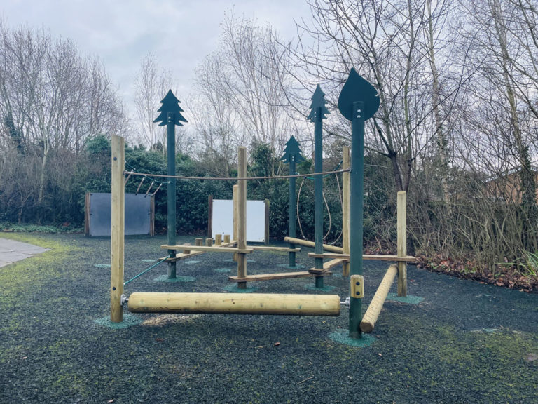 The school initially asked for a bespoke design where we could build a climbing structure to challenge the upper body and lower body strength for all ages. ESP PLAY offered three options for the school to choose from. The school decided they wanted to order the Tricky Trim Trail with Black Wetpour safety surfacing.