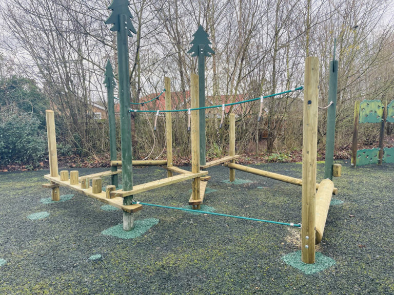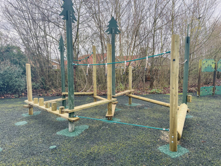 Off the back of a very efficient meeting, quote and design turnaround the school had some more money to spend on the school playground and contacted ESP again. The school wanted to have a smaller climbing project for the EYFS / Wildlife area. ESP PLAY have a variety of Tree Trails to offer, we chose the Tree Trail Thicket from the Wild Wood range.