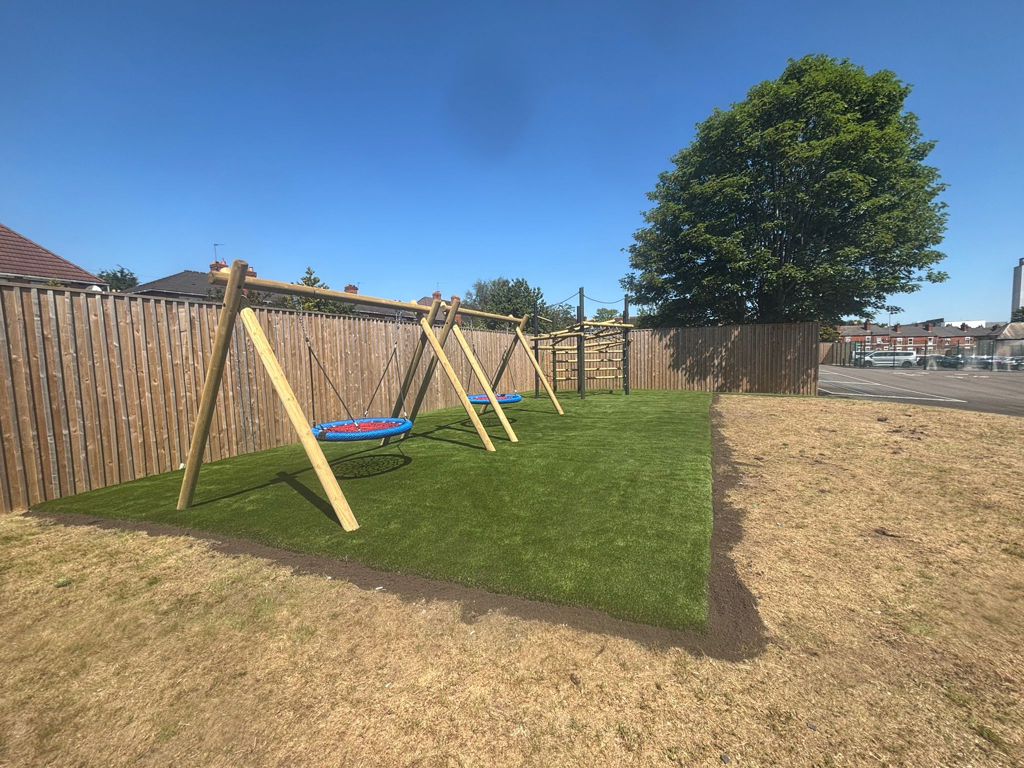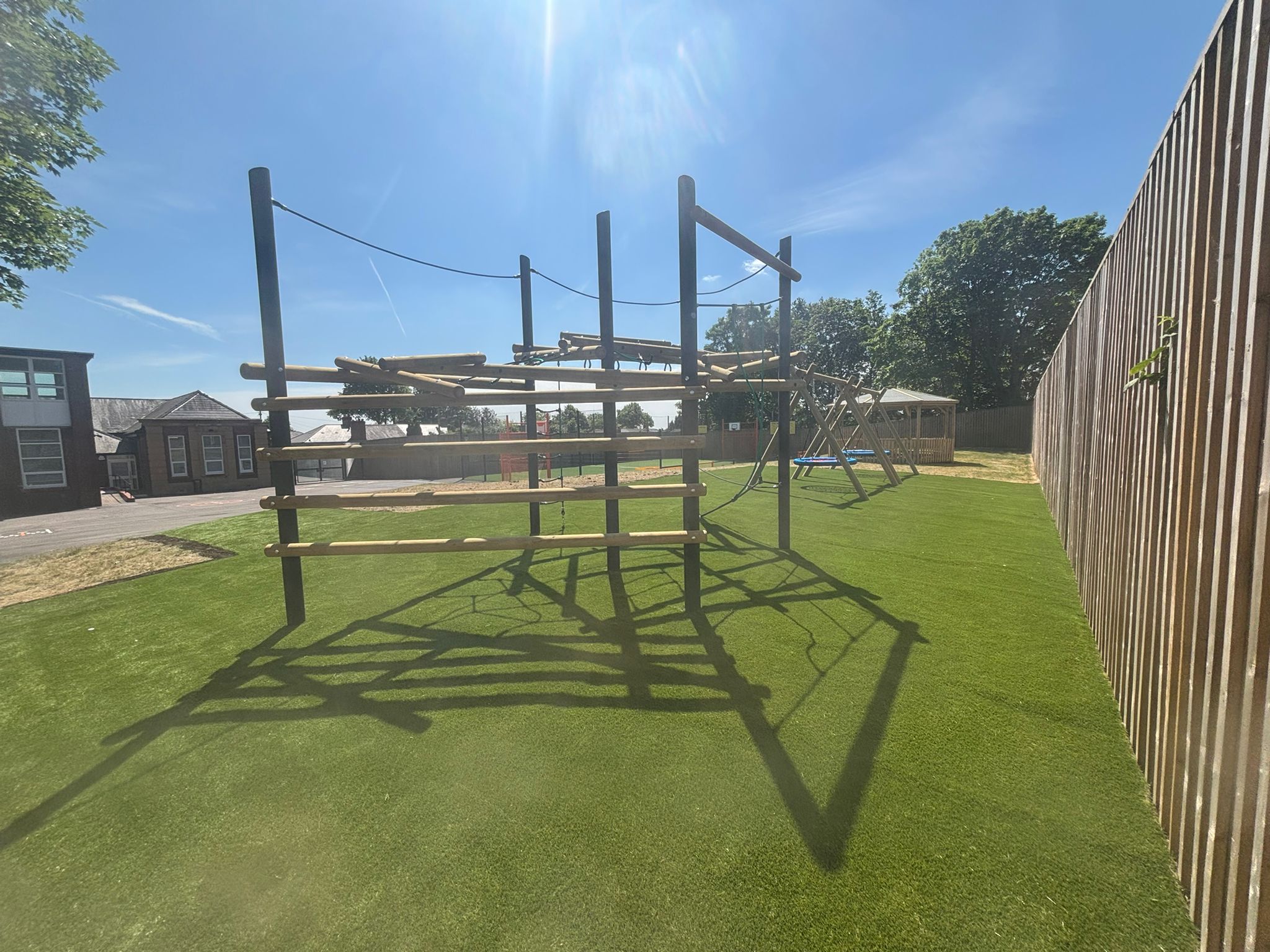 - Tangled climbing frame and bespoke linked trail, creating progressive physical challenges across both playgrounds. Varied equipment styles maintain curiosity and motivation, particularly as pupils transition from primary to secondary provision.