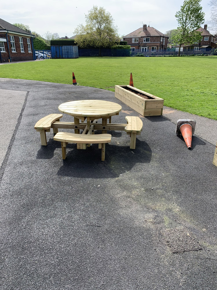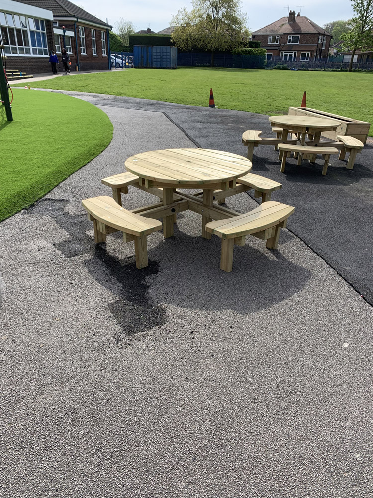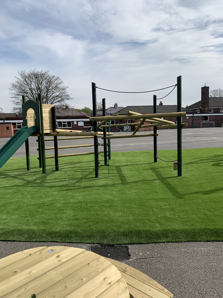 The school wanted to develop the main playground which was a dull, uninviting tarmac space with an old existing trim trail that wasn’t challenging enough for the children and the existing picnic tables were rotten. The school do have a huge field however, this is not accessible for most of the year as it gets very boggy due to the North West weather so, the school wanted to concentrate on developing the tarmac space. They wanted to create clear zoned areas and provide the children with as much as the budget would allow.