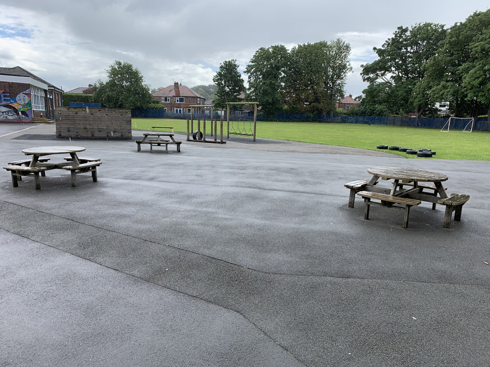 The school wanted to develop the main playground which was a dull, uninviting tarmac space with an old existing trim trail that wasn’t challenging enough for the children and the existing picnic tables were rotten. The school do have a huge field however, this is not accessible for most of the year as it gets very boggy due to the North West weather so, the school wanted to concentrate on developing the tarmac space. They wanted to create clear zoned areas and provide the children with as much as the budget would allow.