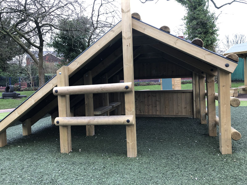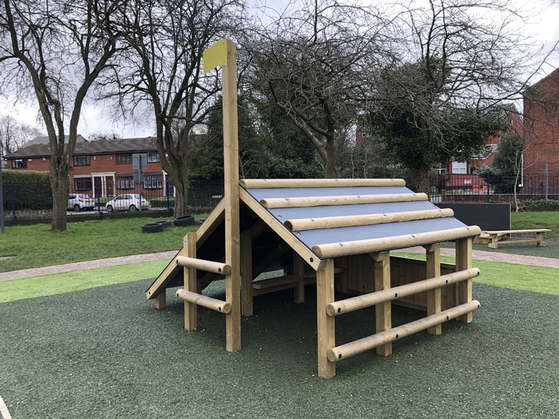The project started with a meeting at the new school site to discuss the school’s requirement’s and to carry out a survey of the area. ESP Play then created a design combining the schools wish list and ensuring it was within the 27k budget. The design included various types of surfacing in order to create different textures, a sandpit which doubled up as a stage with a chalk board back drop and freestanding benches, a small shelter with seating and planters, a wheelchair accessible mud kitchen, messy table, mud trough, storage and a climbing hut which combines imaginative play along with aiding the development of gross motor skills.