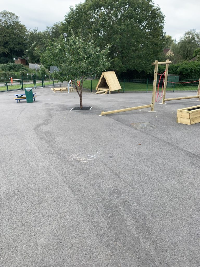 The existing area area featured a small climbing frame atop wetpour surfacing, which was to remain. The remainder of the space was tarmac and lacked additional equipment. Concerns had been raised about children running up and down the slope due to the absence of other activities. The goal was to enhance the space’s fun factor while maintaining safety.