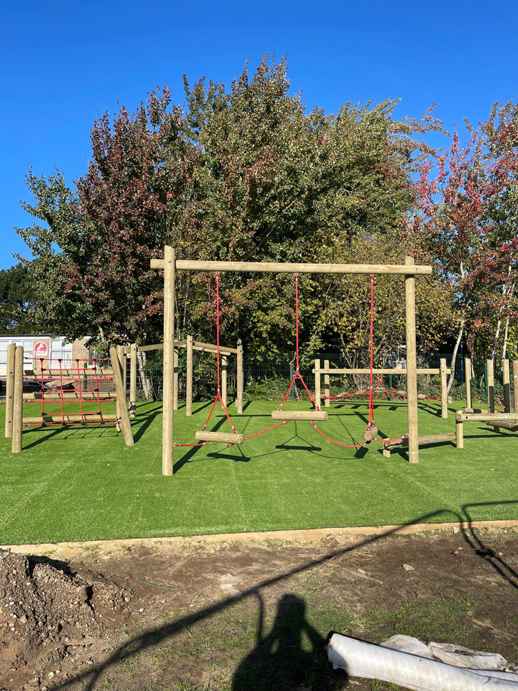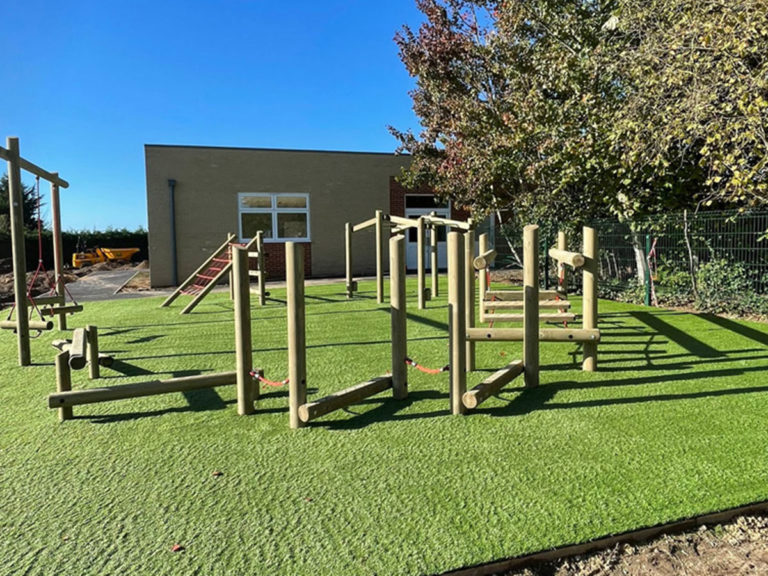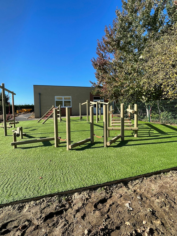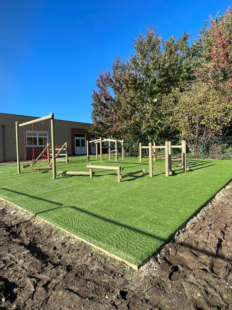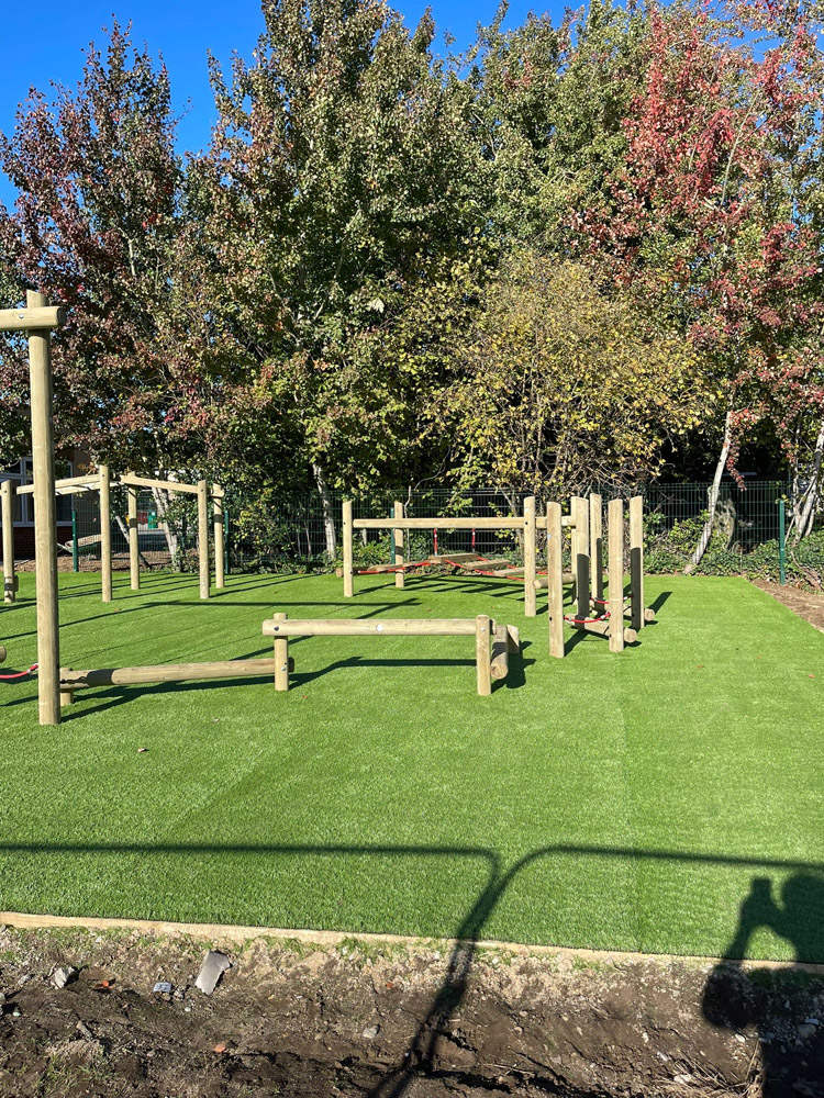 ESP PLAY were contacted to rejuvenate the outdoor space with the installation of a new trim trail and increased early years outside space with climbing equipment and playground resurfacing.