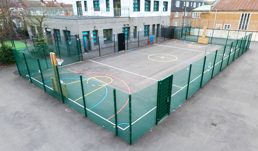 Across KS1&2, ESP designed a purpose built multi-use games area (MUGA) to create a dedicated and contained space for PE and sport to be played at all times of the day. A range of equipment was installed across the rest of the playground providing opportunities for climbing, quiet and performance play.