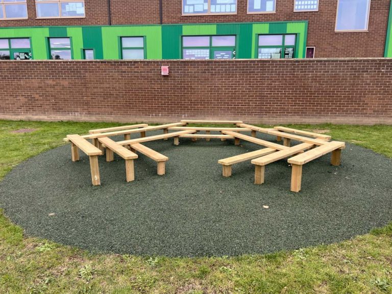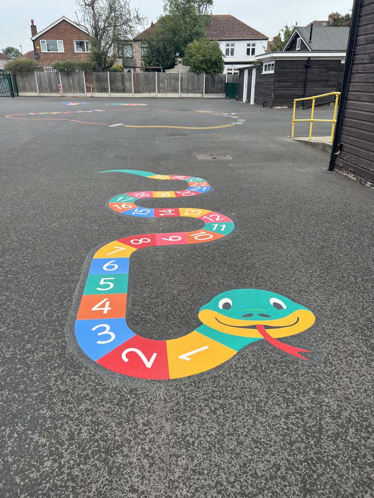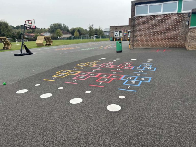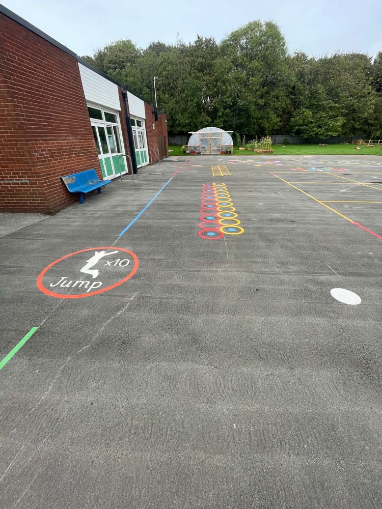 A complete playground overhaul at Danson Primary School. Playground markings, seating areas, climbing frames and a MUGA.