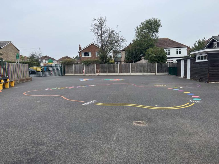 A complete playground overhaul at Danson Primary School. Playground markings, seating areas, climbing frames and a MUGA. Danson Primary originally started life as Little Danson, comprising a few wooden buildings, in the early 1930s.