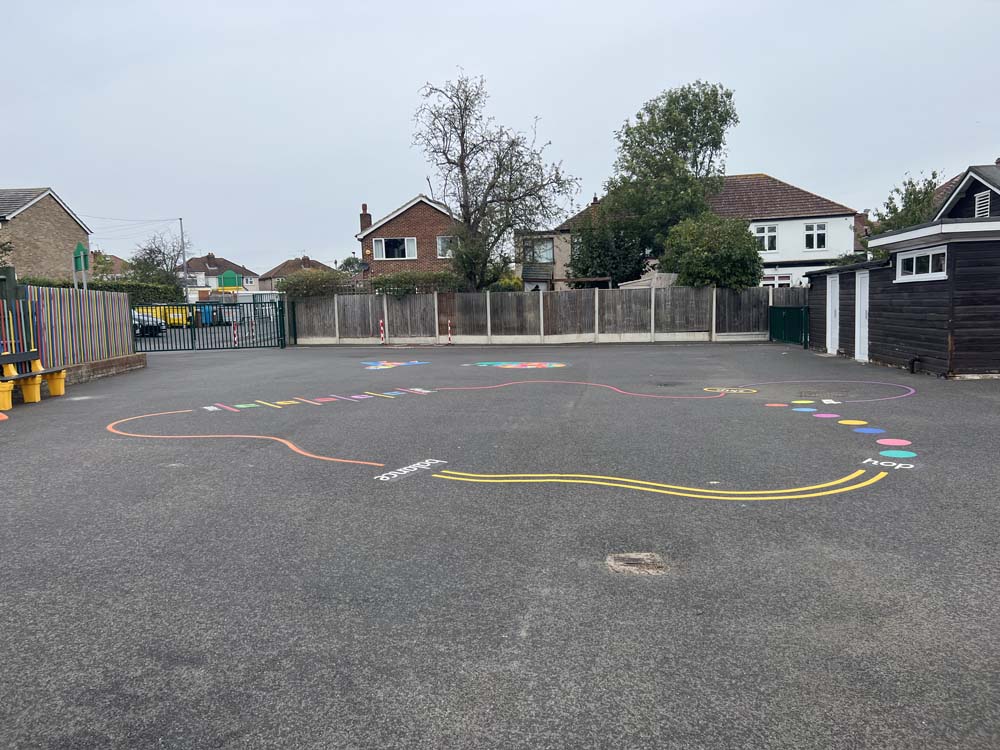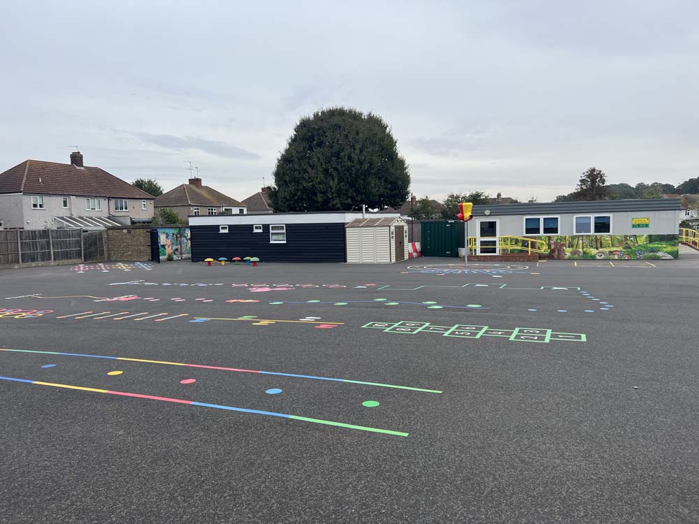 A complete playground overhaul at Danson Primary School. Playground markings, seating areas, climbing frames and a MUGA. Danson Primary originally started life as Little Danson, comprising a few wooden buildings, in the early 1930s.