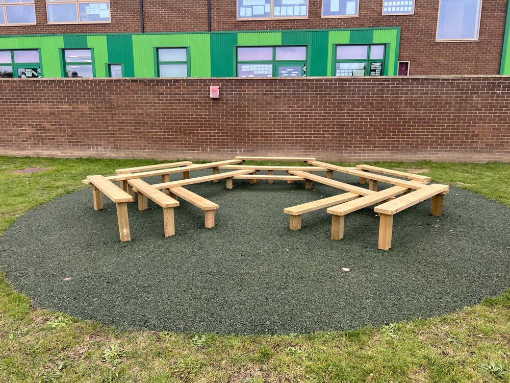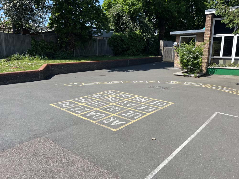 A complete playground overhaul at Danson Primary School. Playground markings, seating areas, climbing frames and a MUGA.
