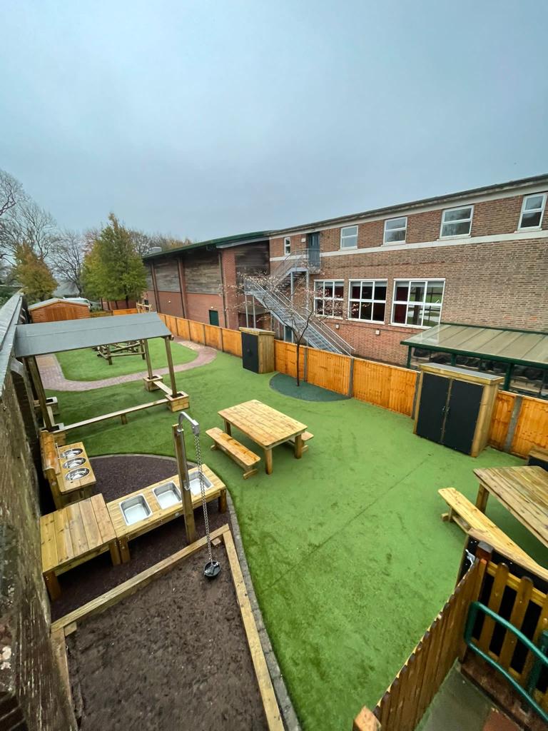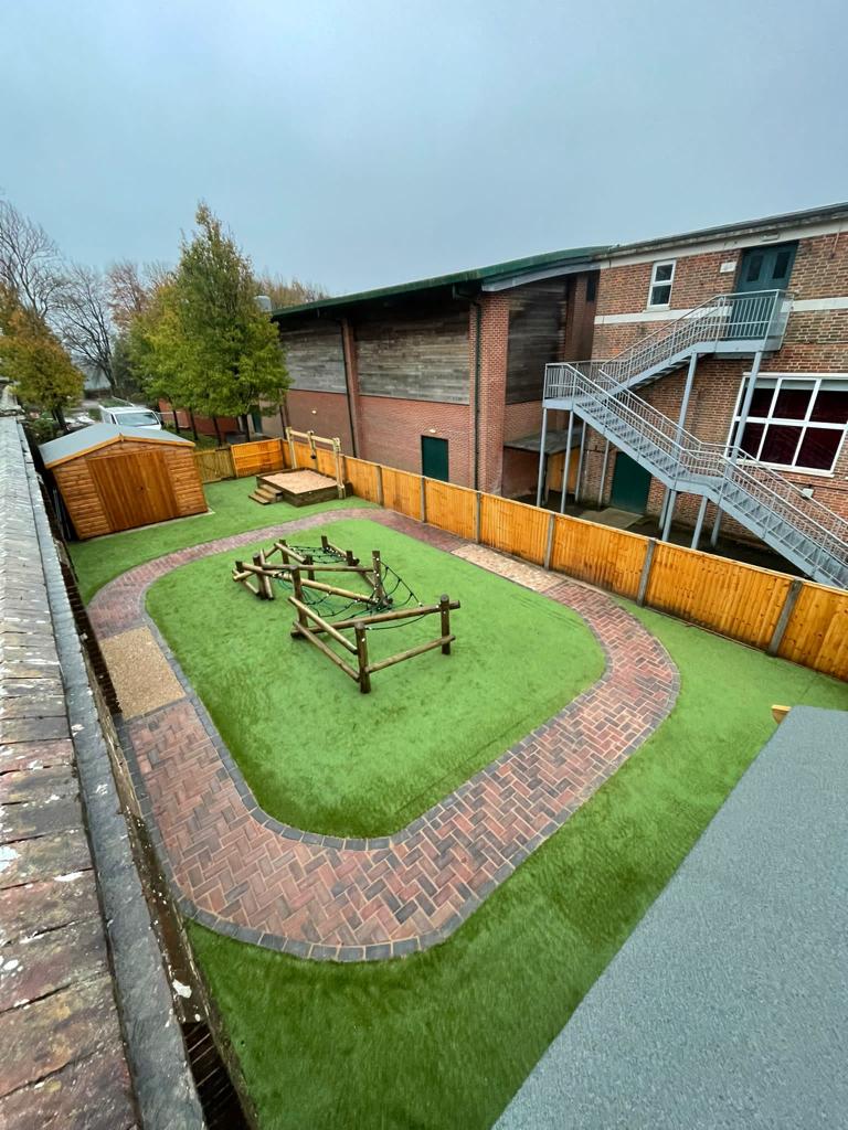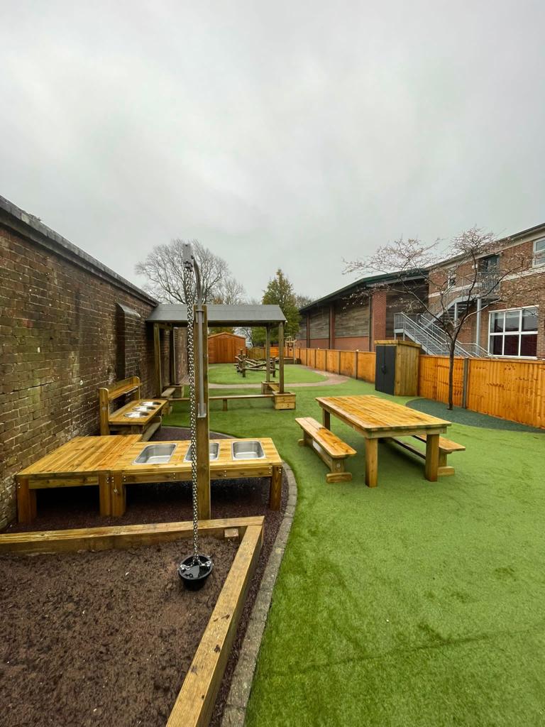 The existing reception provision was dull and uninviting with a mix of old coloured wetpour and artificial grass that due to age was showing signs of wear and shrinkage making the area unsafe with trip hazards. The equipment they had was old, worn and not challenging for the children. The space was long and narrow so making the best use of the space was essential.