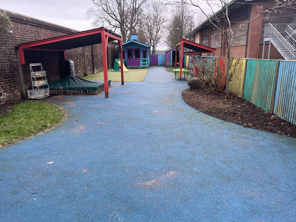 The existing reception provision was dull and uninviting with a mix of old coloured wetpour and artificial grass that due to age was showing signs of wear and shrinkage making the area unsafe with trip hazards. The equipment they had was old, worn and not challenging for the children. The space was long and narrow so making the best use of the space was essential.