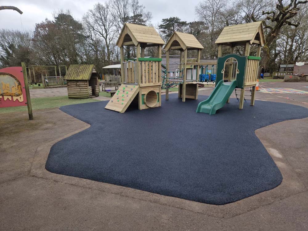 We removed the existing surfacing and climbing tower and replaced this with our Fawcett Playtower and new black wetpour. The area has transformed and the children are having so much fun using it.