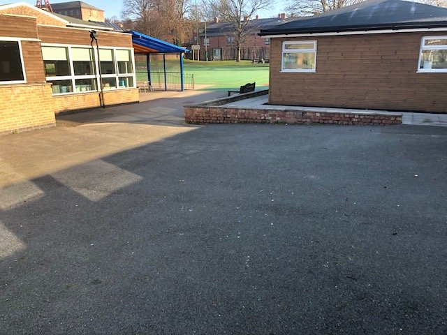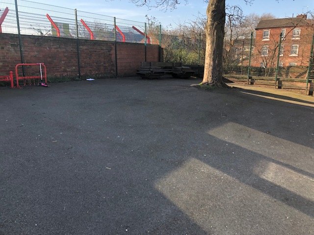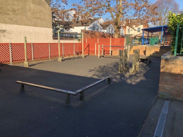Edna G Olds Academy is an inner city school situated within the vibrant community of Lenton, Nottingham. There are currently 227 pupils on roll who truly reflect the diverse cultural heritage of their wonderful local community, for example, 73% of the children speak an additional language other than English. Developing a culture of excellence whereby the primary focus is upon exceptional teaching and learning provision ensures that pupils will flourish and get to realise their potential. All of their children are encouraged to think creatively, question and embed a philosophy of high standards in order to achieve their goals. The school ethos promotes high personal, social and moral values, independence, self-discipline and resilience. At Edna G Olds Academy they want to inspire their pupils to excel in every aspect of their lives. ESP was invited in to school to discuss the development of two separate play areas. Both the areas were tarmac spaces. One was a well-used playground, which had an old existing trim trail, and the other was completely blank area that wasn’t really used for play…until now!!