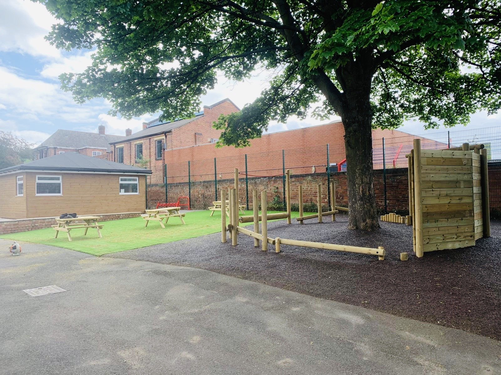 Edna G Olds Academy is an inner city school situated within the vibrant community of Lenton, Nottingham. There are currently 227 pupils on roll who truly reflect the diverse cultural heritage of their wonderful local community, for example, 73% of the children speak an additional language other than English. Developing a culture of excellence whereby the primary focus is upon exceptional teaching and learning provision ensures that pupils will flourish and get to realise their potential. All of their children are encouraged to think creatively, question and embed a philosophy of high standards in order to achieve their goals. The school ethos promotes high personal, social and moral values, independence, self-discipline and resilience. At Edna G Olds Academy they want to inspire their pupils to excel in every aspect of their lives. ESP was invited in to school to discuss the development of two separate play areas. Both the areas were tarmac spaces. One was a well-used playground, which had an old existing trim trail, and the other was completely blank area that wasn’t really used for play…until now!!