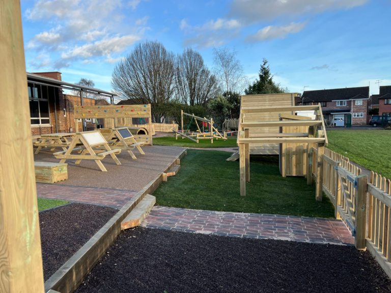 The Outcome – Honesty is the best policy! Having advised the client of extended lead times from the outset, this ultimately afforded the school sufficient time to finesse the proposal to meet their exact requirements. The fundamentals of the design were achieved in the first draft. Through open dialogue and more realistic timelines, all practitioners were able to contribute until the proposal met their vision. The final outcome is a comprehensive redesign of the play area, encompassing both hard and soft landscaping, executed by ESP as a turnkey solution. The project received approval in October 2021 and the work began in December of the same year. The school was originally reluctant to develop during term time. However, their concerns were alleviated by ESP’s diligent work program and timelines, which were strictly followed. The £100,000 EYFS project took 7 months from conception through to works completion. The installation itself took just 3 weeks to complete.