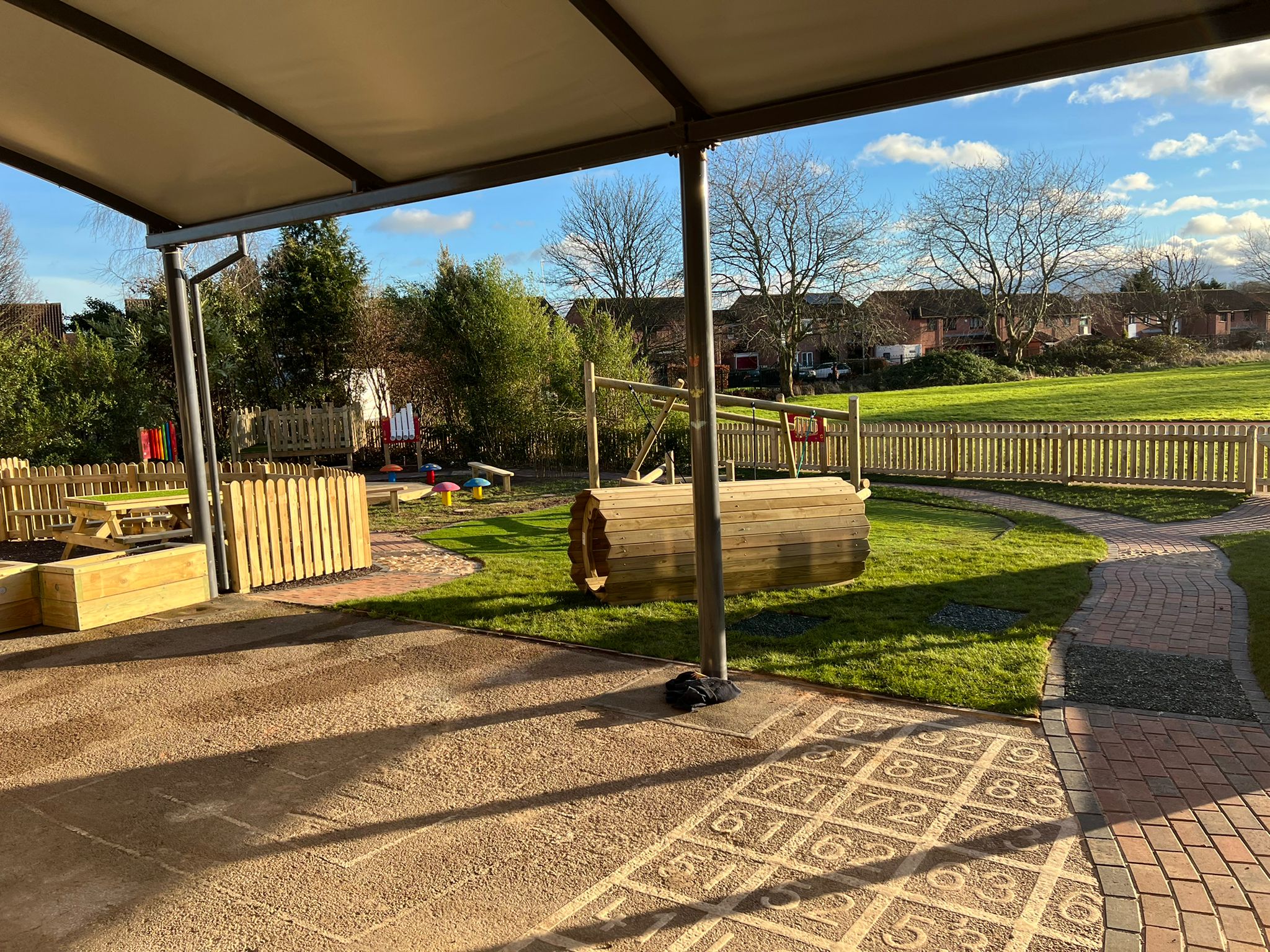 The Outcome – Honesty is the best policy! Having advised the client of extended lead times from the outset, this ultimately afforded the school sufficient time to finesse the proposal to meet their exact requirements. The fundamentals of the design were achieved in the first draft. Through open dialogue and more realistic timelines, all practitioners were able to contribute until the proposal met their vision. The final outcome is a comprehensive redesign of the play area, encompassing both hard and soft landscaping, executed by ESP as a turnkey solution. The project received approval in October 2021 and the work began in December of the same year. The school was originally reluctant to develop during term time. However, their concerns were alleviated by ESP’s diligent work program and timelines, which were strictly followed. The £100,000 EYFS project took 7 months from conception through to works completion. The installation itself took just 3 weeks to complete.