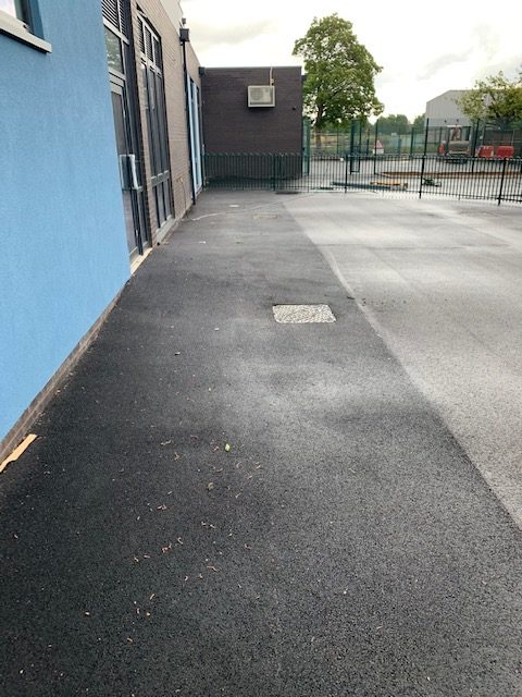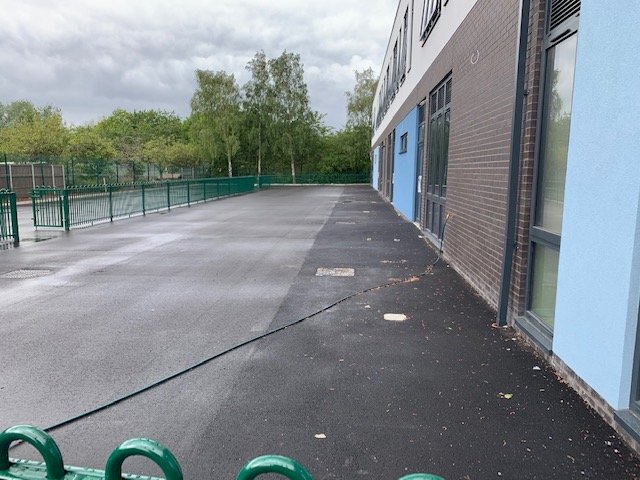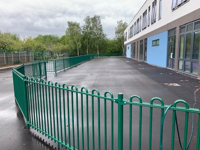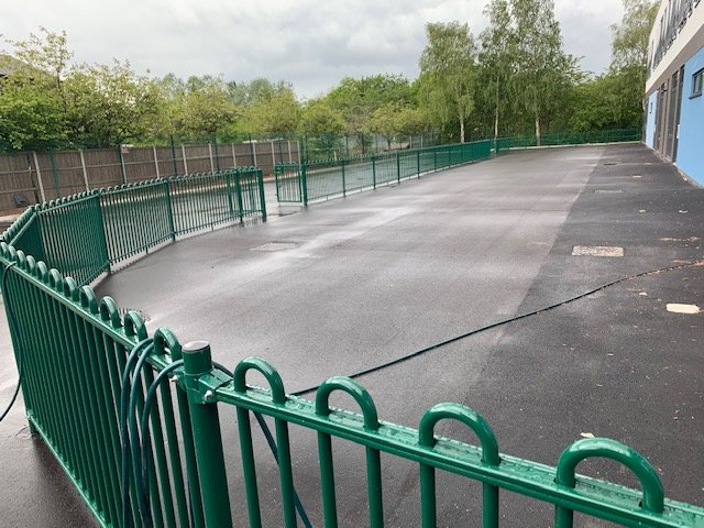 The other main challenge was the scale of the installation. This was a large area, the length of the entire school, which had to accommodate three separate playgrounds, nursery, KS1 and KS2, each equipped with many types of apparatus.