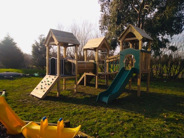 The play equipment needed to challenge skills such as going under and under, grip, crawling, footwork balance and general role play and imagination.