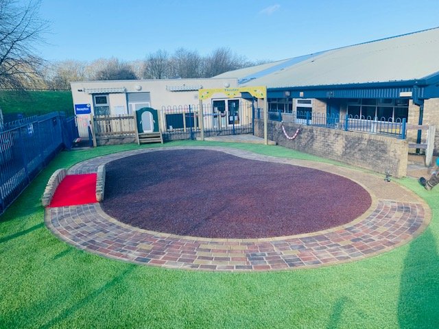 The main tarmac area saw a brand new block-paving roadway installed to integrate varying textures and to provide wider sensory experiences. Also included in this area was a construction area, mark making stations, the popular raised woodland play hut, an amphitheatre, artificial grass and a magnetic water wall.