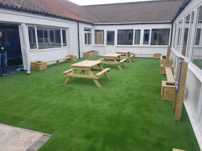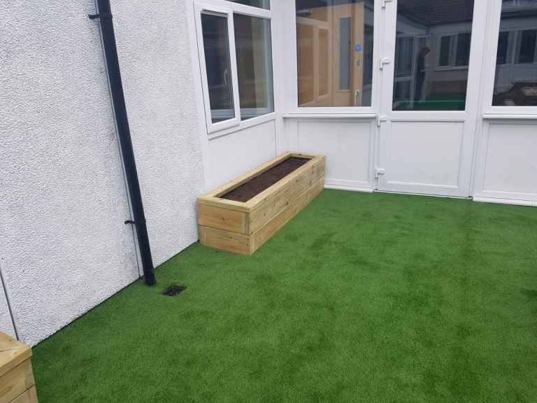 The old Wetpour surface was removed and replaced with a brand new artificial grass surface, which has brought an all year round green grass area that requires no maintenance. Bamboo screening was adding the green steel fencing to make the area private and to create and natural oasis.