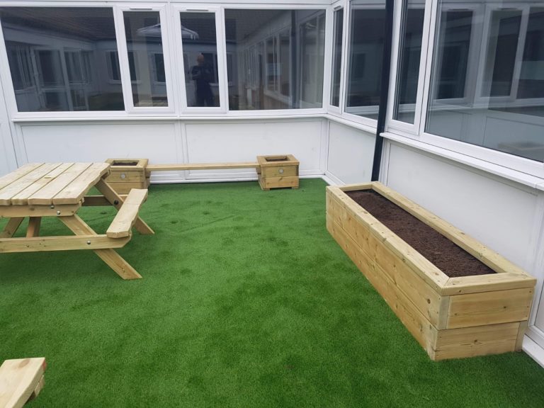 It is safe to say the area has been transformed into a fantastic little learning oasis. With the realignment of the fencing and the removal of the large equipment, the area feels much larger which enables the children to free flow more easily between the indoor and outdoor classroom. The continuous provision has improved greatly and the outdoor provision offers a progression between indoor and outdoor learning. There is now a purposeful relation between the indoor and outdoor learning.