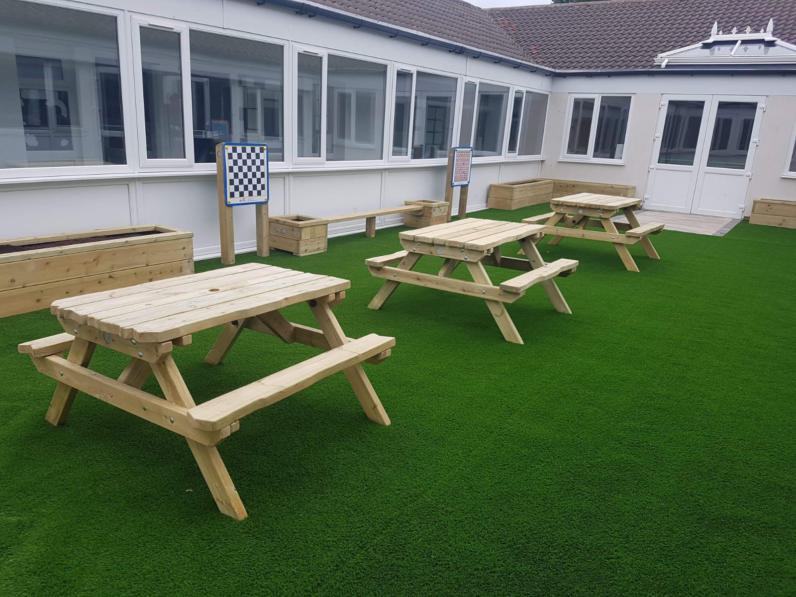 The old Wetpour surface was removed and replaced with a brand new artificial grass surface, which has brought an all year round green grass area that requires no maintenance. Bamboo screening was adding the green steel fencing to make the area private and to create and natural oasis.