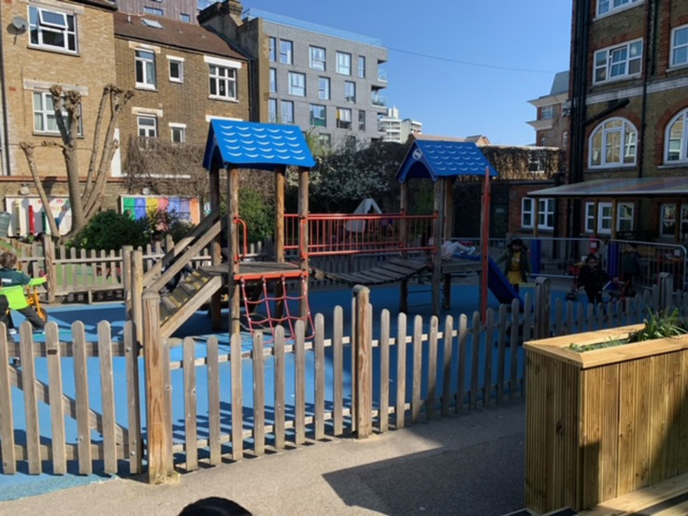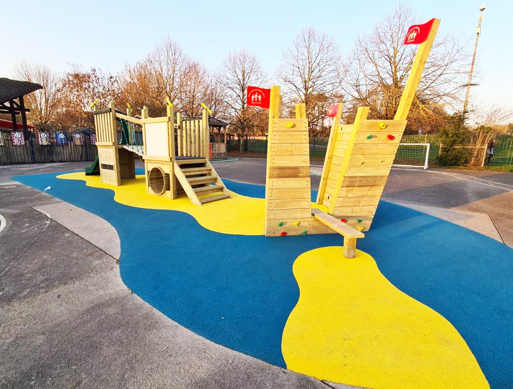 The school had an uninspiring seating style boat that was old and in need of replacing. The school wanted to replace with something similar. We designed and installed this visually impressive ship with a beach themed wetpour safety surface, that offers both physical and imaginative development opportunities for the KS1 children.