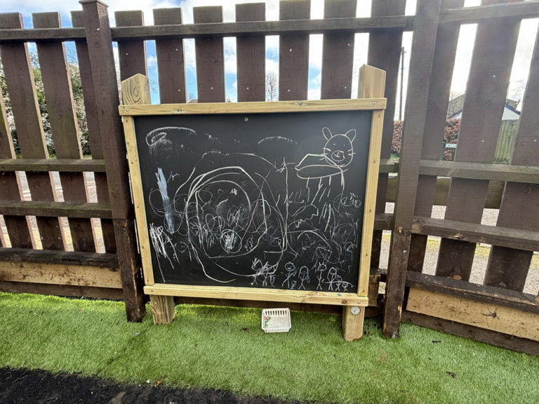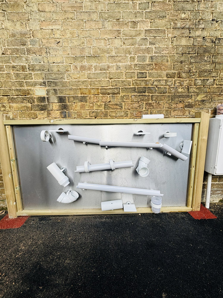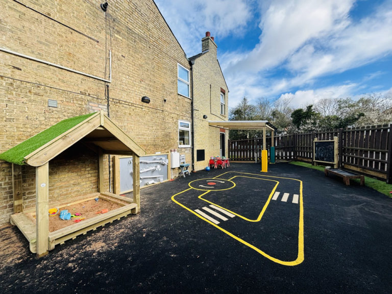 ESP PLAY designed a bespoke roadway for the children to scooter and ride their bikes around and to allow for daily physical activities opportunities. This playground design also featured a magnetic water wall, an open ended play hut including a bespoke sand pit, two musical panels and a large chalk board for mark making.
